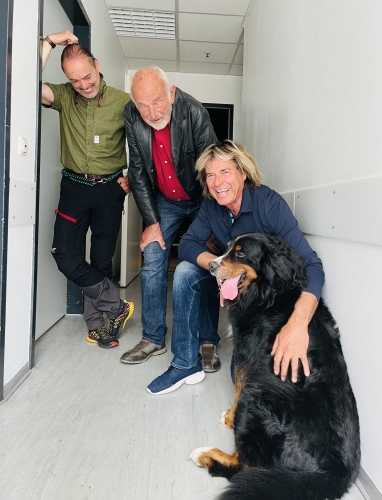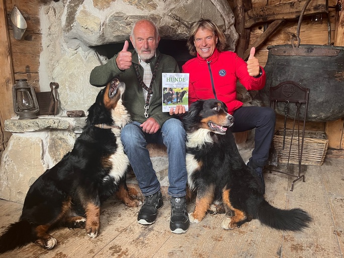 Ustin,Branca v. Schöneben und W.Z. haben Hansi Hinterseer das neue Berner-Sennenhund-Buch in Kitzbühel vorgestellt.