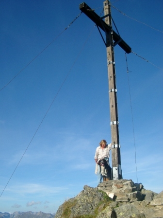 22.09. Hansi und QuinceyHansi Hinterseer und Quincey auf dem Gipfel der Kreuzjochs bei den Dreharbeiten zu "Wildromantisches Montafon" |