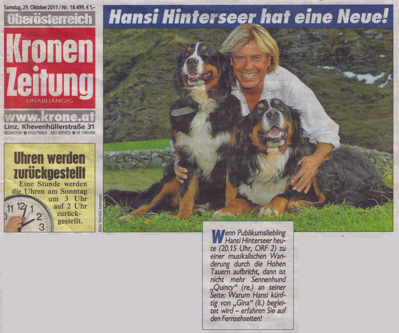 29.10. Gina und Quincey in der KRONEN ZEITUNG![]() Gina und Quincey haben es auf die Titelseite der KRONE geschafft! |