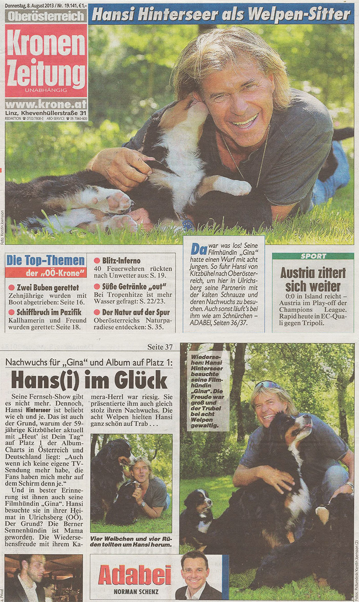 16.07.Hansi Hinterseer besucht seine Filmpartnerin Gina mit ihrem Nachwuchs. |