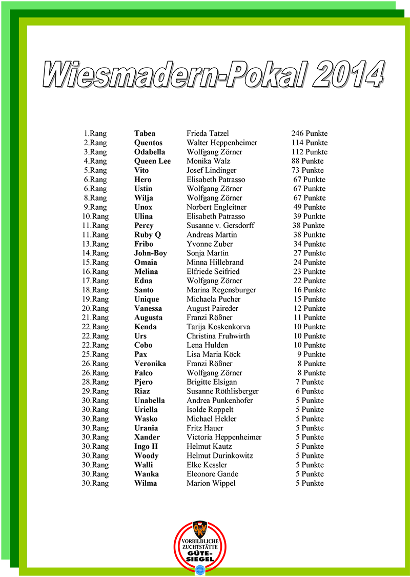 01.03.Unsere Zuchtstätte hat im Züchter-Cup 2014 des VSSÖ den 1. Rang gewonnen! |