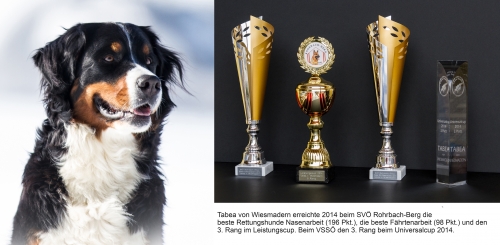 10.08. Spitzen-FährtenhundeEinen besonderen Erfolg können wir vermelden: Bei der Österreich-weiten TOP-10-Wertung der Fährtenhunde des SVÖ konnten sich 5 Wiesmadern-Hunde plazieren. FH 1: Vito mit Ingrid Lindinger Rang 2, Wilja mit Wolfgang Zörner Rang 6, FH 2: Tabea mit Frieda Tatzel Rang 4, Ustin mit Wolfgang Zörner Rang 8. FH 3: Odabella mit Wolfgang Zörner Rang 8. Derzeitiger Stand (August 2015). |