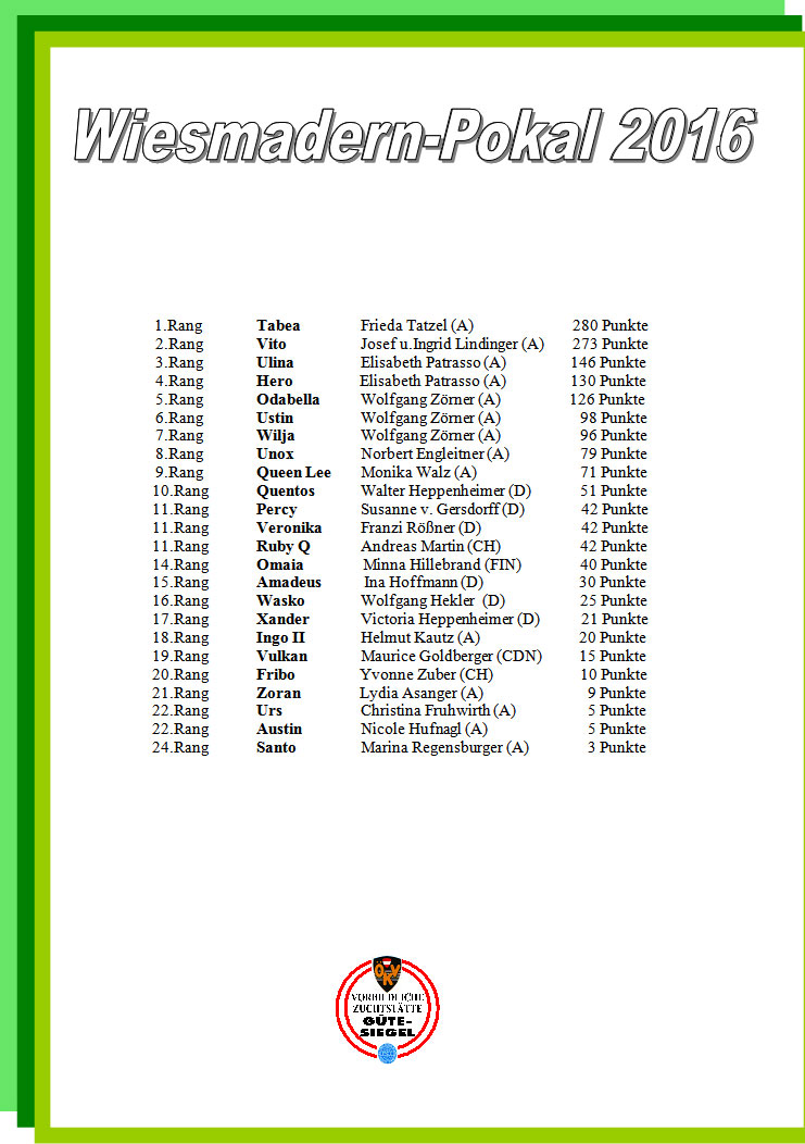 Unsere Zuchtstätte hat bei der Vergabe des VSSÖ-Züchter-Cups den 3. Rang erreicht.