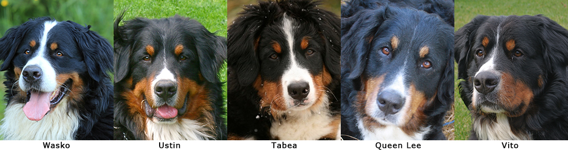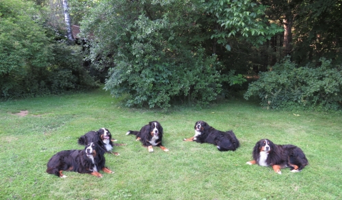 Erfolgreiche Wiesmadern-Hunde beim diesjährigen Sennenhunde-Turnier. Wasko (FH 1 Rang 1), Ustin (BGH 2 Rang 1 u. BGH 3 Rang 5), Tabea (FH 3 Rang 1 u. BGH 3 Rang 6), Queen Lee (FH 2 Rang 1) und Vito (BGH 3 Rang 2).