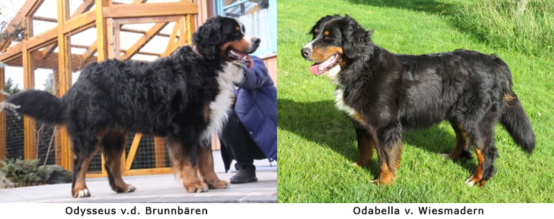 Odabella v. Wiesmadern (ÖHZB BS 4692, HD: frei, ED: normal, DM: N/DM) wurde in der Zuchtstätte „von Schöneben“ (Elisabeth Patrasso) von Odysseus v.d. Brunnbären (ÖHZB BS 4889, HD:frei, ED: normal, DM: N/N) gedeckt.