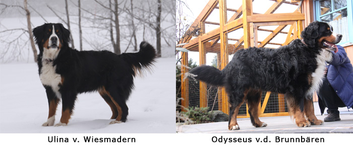 Ulina v. Wiesmadern( ÖHZB BS 5074, HD-frei; ED-normal, DM: N/N) wurde in der Zuchtstätte „von Schöneben“ (Elisabeth Patrasso) von Odysseus v.d. Brunnbären (ÖHZB BS 4889, HD-frei, ED-normal, DM: N/N) gedeckt.
