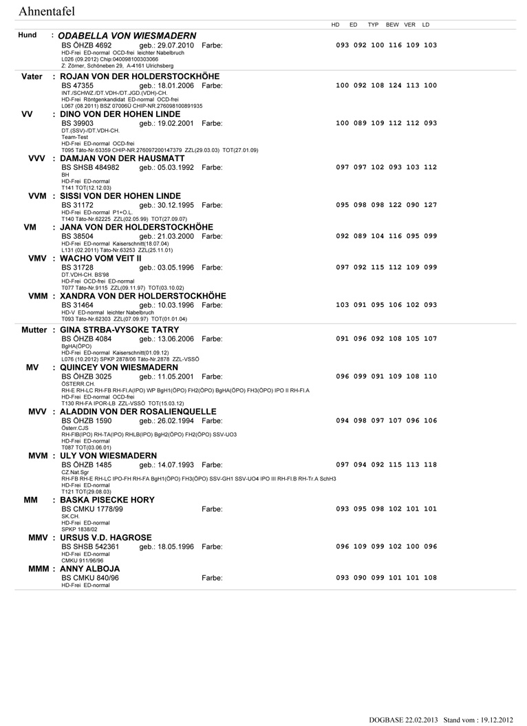 geb.: 29.07.2010 ÖHZB BS 4692 gest.: 01.06.2018 HD A1, ED-0, OCD-frei, Zuchtzulassung seit: 15.12.2012, |